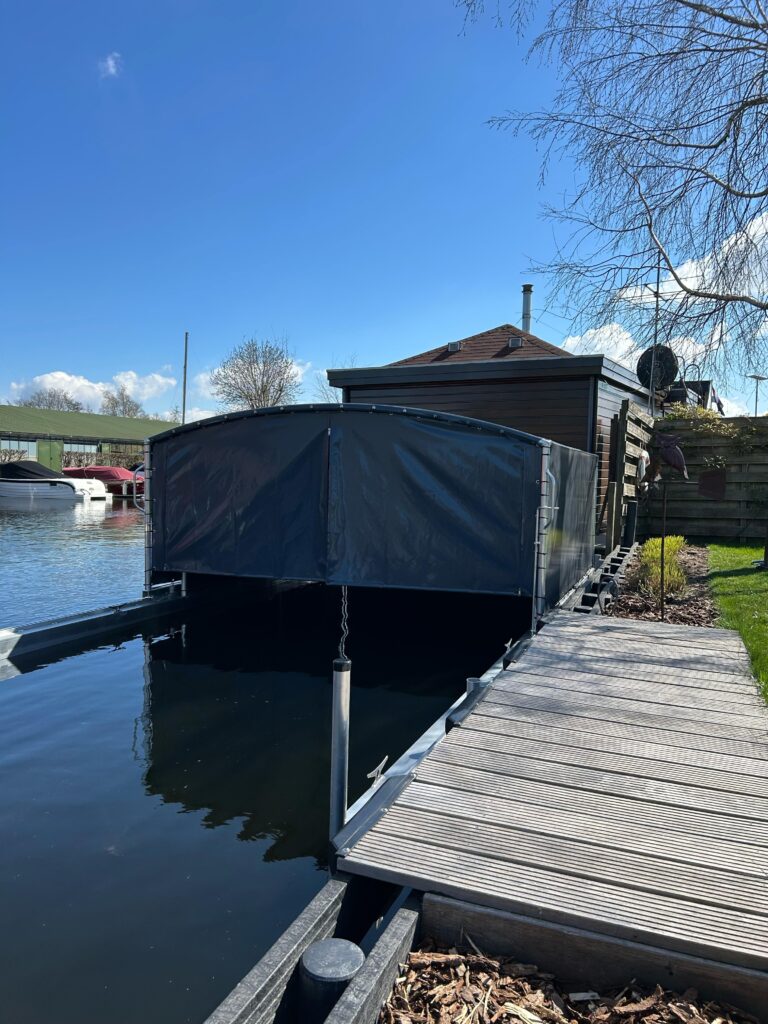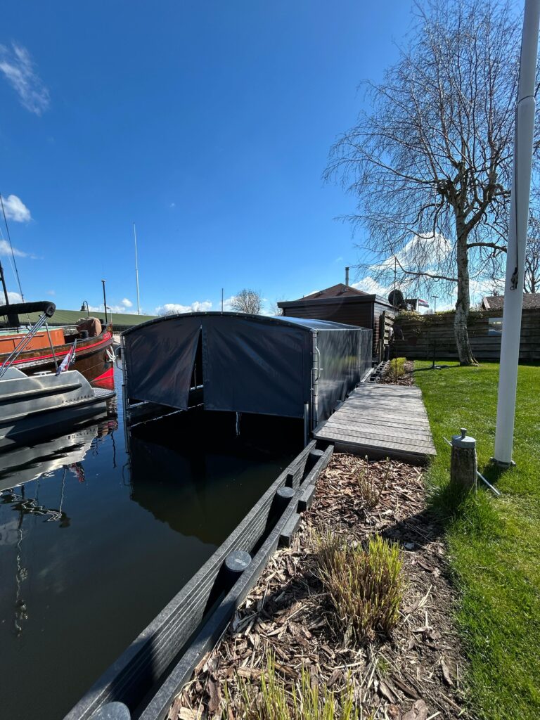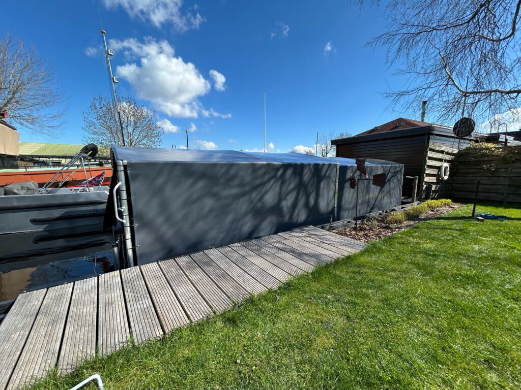 Wir haben kürzlich erfolgreich ein Float-Float-Bootszelt in Aalsmeer installiert! Das Zelt hat eine Länge von 7 Metern, eine Breite von 3 Metern und eine Höhe von 1,5 Metern und bietet den perfekten Schutz für Ihr Boot, unabhängig vom Wasserstand. Das Float-Float-System sorgt dafür, dass sich das Zelt flexibel an Schwankungen im Wasser anpasst, sodass Sie Ihr Boot stets unbeschwert genießen können.