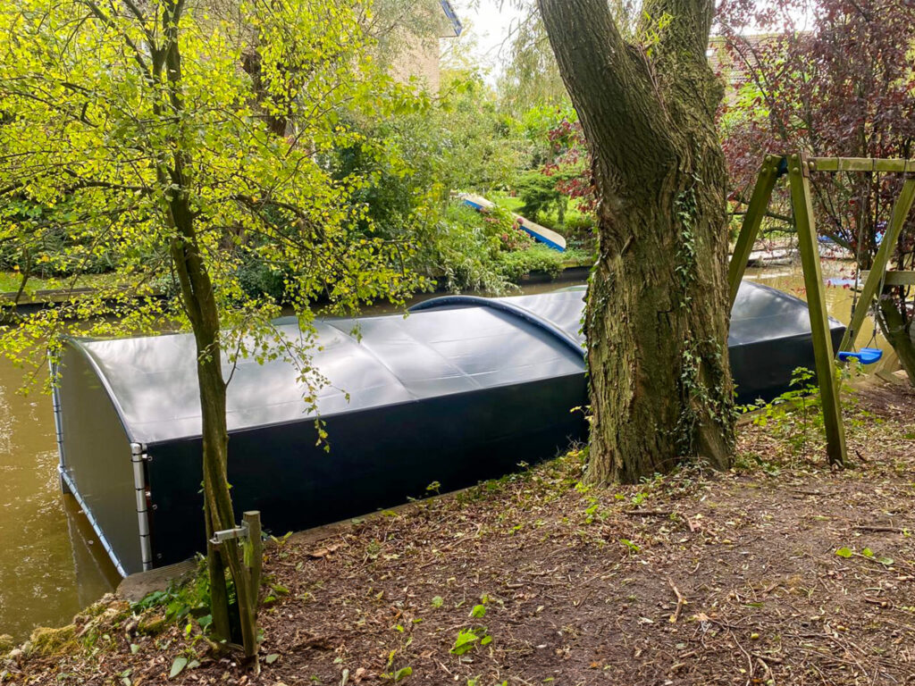 Wir haben kürzlich erfolgreich eine schwimmende Bootsabdeckung für die Familie Folkeringa in Goutum installiert, die mit unserem Float-Float-System ausgestattet ist. Mit den Maßen 7,20 Meter Länge, 3 Meter Breite und 1,50 Meter Höhe bietet dieses System eine robuste und zuverlässige Lösung, um sein Boot sicher auf dem Wasser zu lagern. Die starken Schwimmer sorgen für optimale Stabilität, sodass sich die Überdachung ideal für eine langfristige und unbeschwerte Nutzung eignet.
