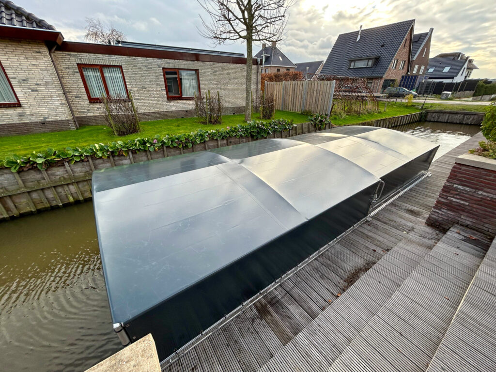 Für unseren Kunden Van Marrewijk haben wir ein innovatives Wal-Drijf-System geliefert. Dieses maßgeschneiderte Projekt mit acht Metern Länge, drei Metern Breite und zwei Metern Höhe vereint Funktionalität mit Zuverlässigkeit und gewährleistet perfekten Schutz und Stabilität, unabhängig vom Wasserstand. Die Konstruktion passt sich nahtlos an die Umgebung an und bietet unseren Kunden ein Höchstmaß an Benutzerfreundlichkeit und Sicherheit. Dieses langlebige und absolut wetterfeste System ist perfekt auf die spezifischen Wünsche der Familie Van Marrewijk zugeschnitten.