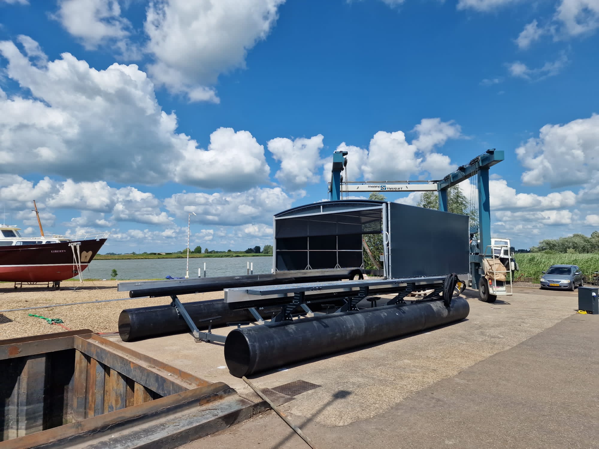 Discover our innovative floating boat lift, specially designed for heavier boats weighing between 2500 and 8000 kg. This innovative boat lift utilizes air pressure-driven HDPE tanks. It can be placed without a permit due to its floating nature. And with the custom options and professional installation that you’re accustomed to from DutchBoatHouse.