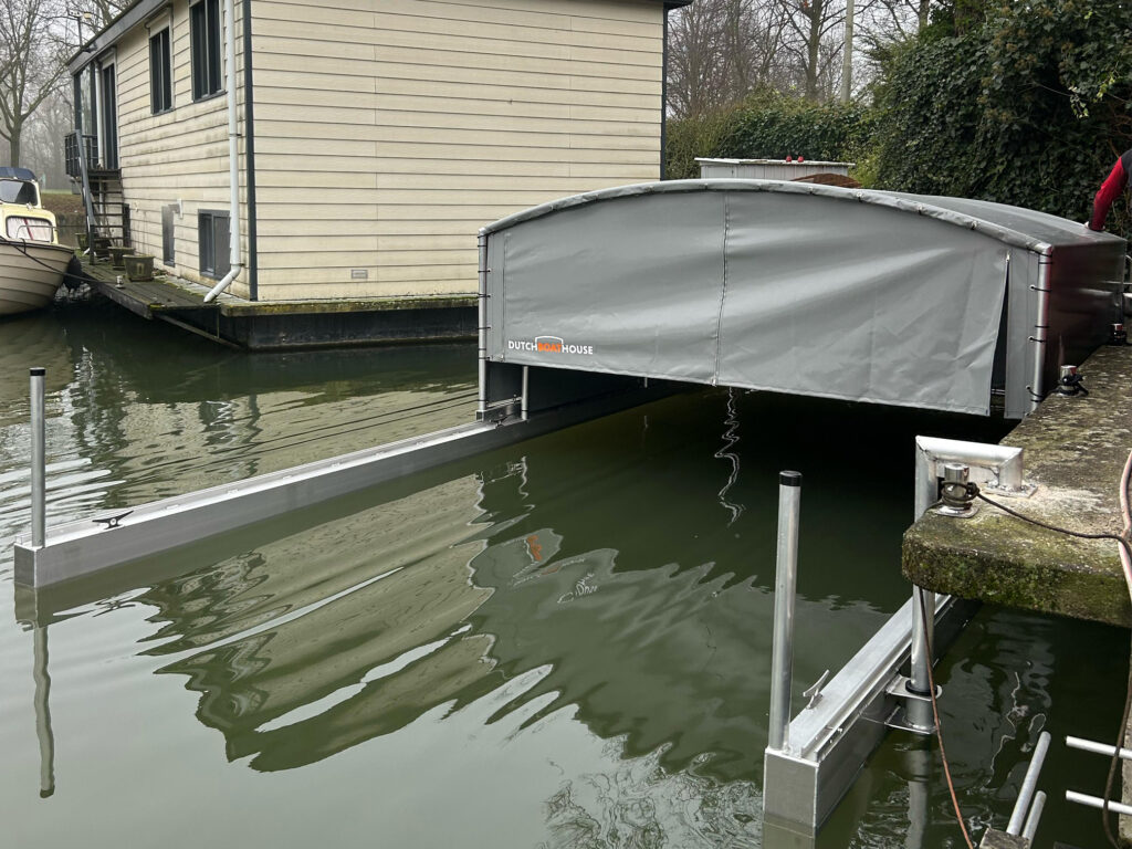 We installed a custom-made canopy on a houseboat for our customer in Utrecht. Measuring 7 meters long, 3 meters wide and 1.5 meters high, this hood offers optimal protection against the elements, while the sleek design fits in perfectly with the environment. Thanks to the durable materials and solid construction, this system is completely weatherproof and low-maintenance, so that our customer can enjoy aquatic life without any worries.