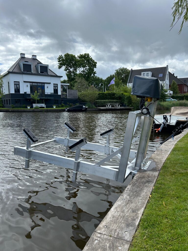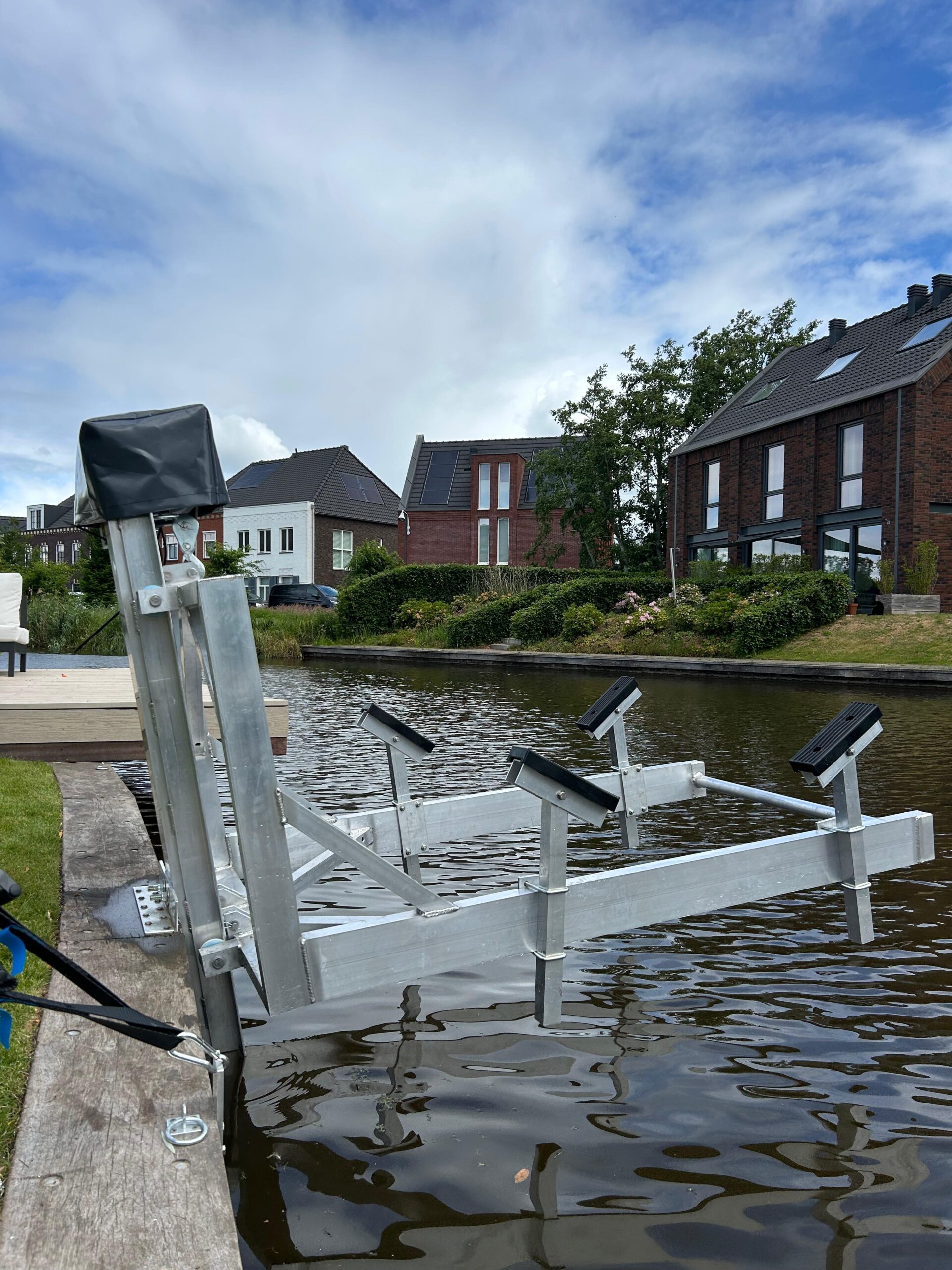 Para un cliente de Amersfoort, instalamos un elevador de muelle con capacidad de 750 kg. Con el control eléctrico, elevar el barco ahora es pan comido. De tamaño compacto y gran practicidad, este elevador es ideal para barcos pequeños y amarres urbanos.