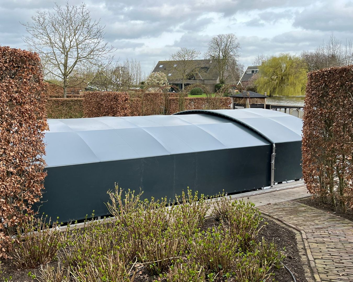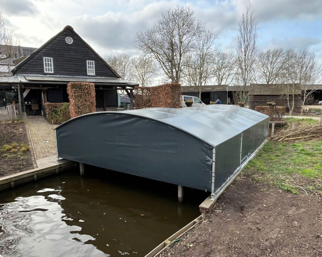 En Bleskensgraaf, realizamos una cubierta para embarcaciones DBH con diseño lateral, totalmente personalizada según las necesidades del cliente.