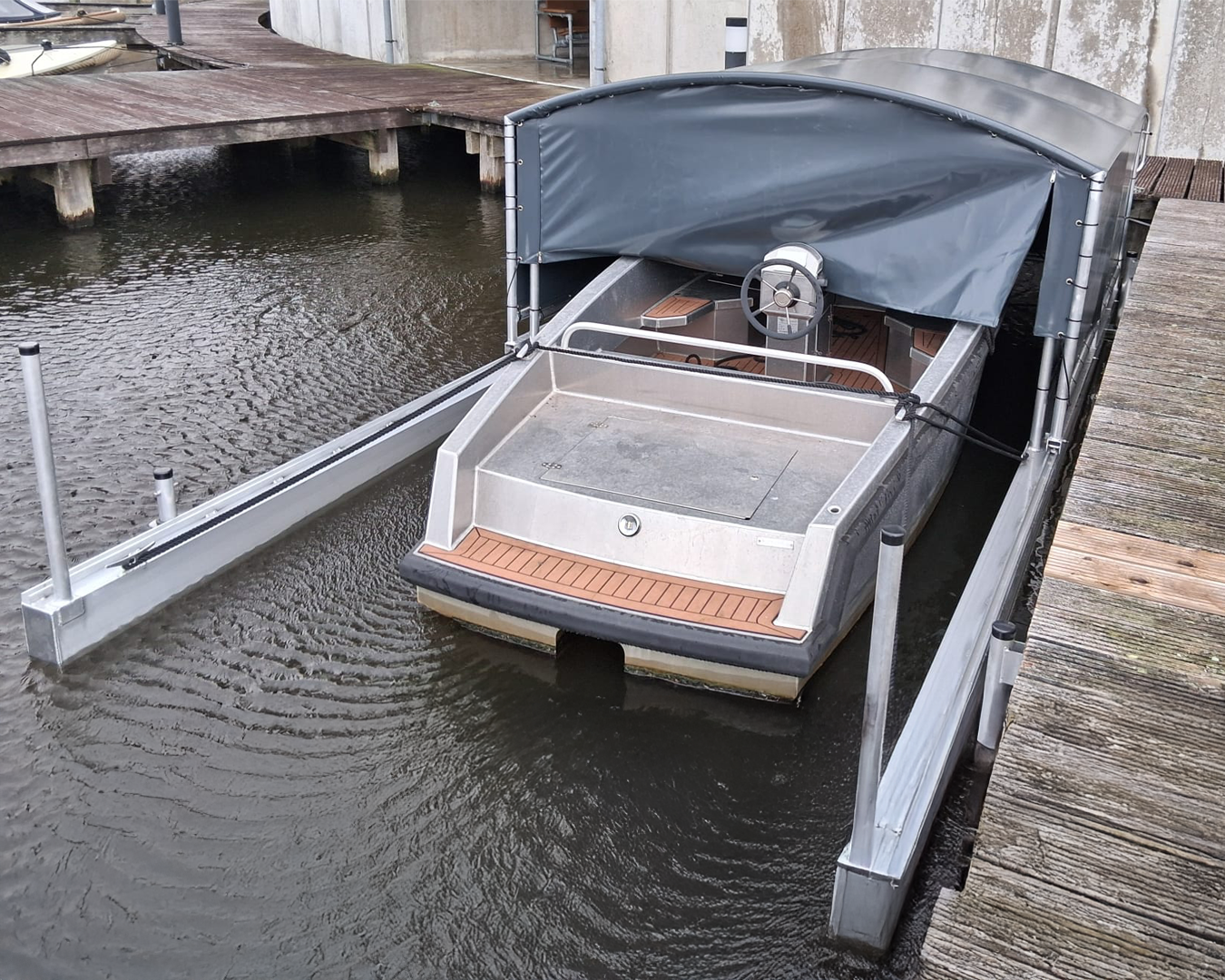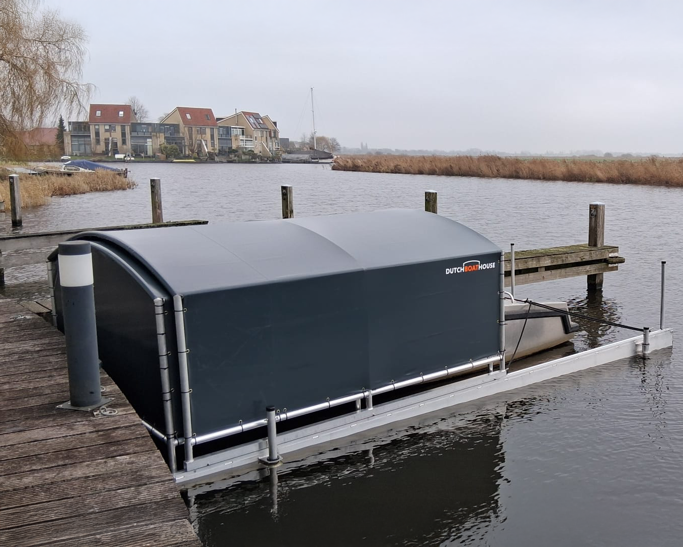 In Sneek hebben we onlangs een beschadigde bootoverkapping volledig gedemonteerd en vervangen door een gloednieuwe, hoogwaardige én stormbestendige DBH bootoverkapping.